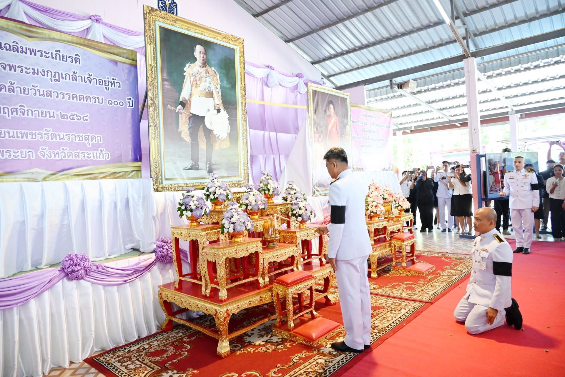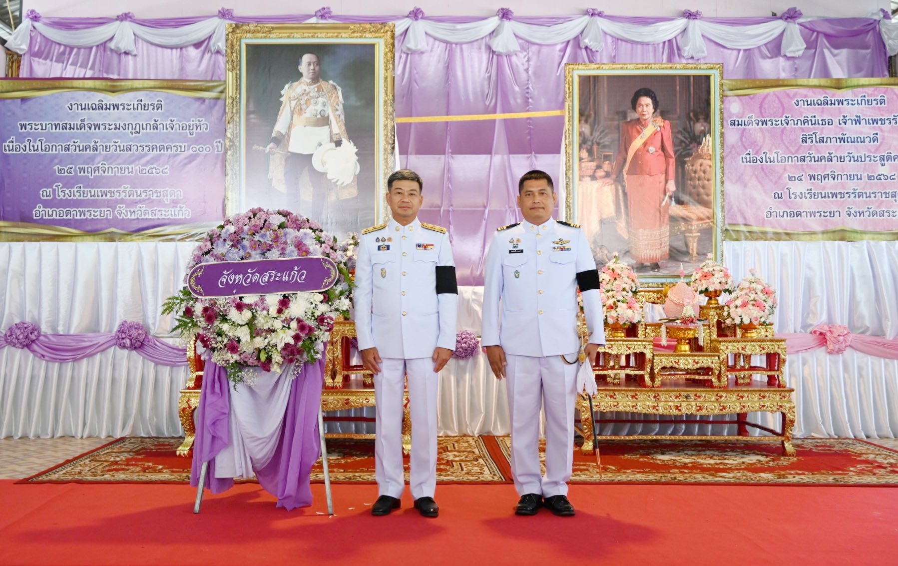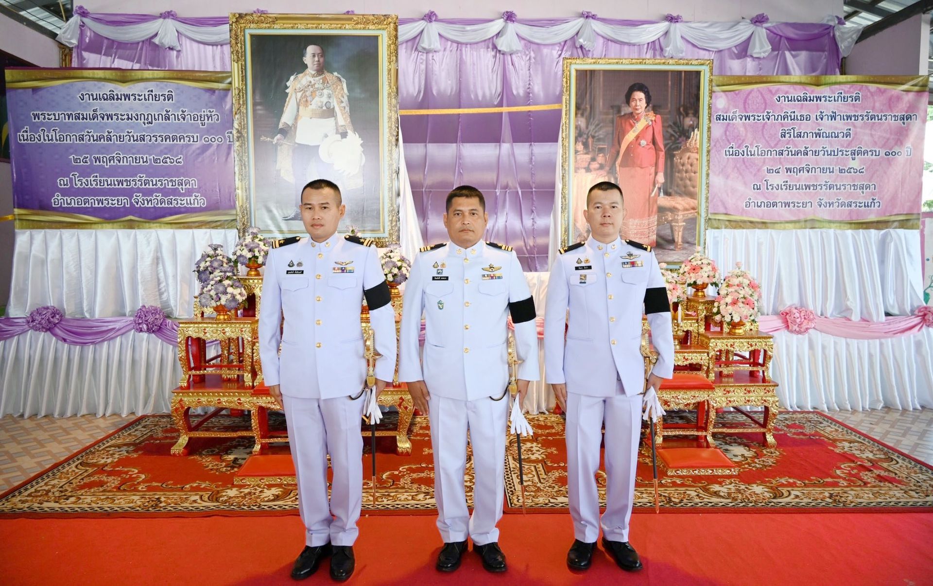 เมื่อวันที่ ๒๕ พฤศจิกายน ๒๕๖๘ ณ โรงเรียนเพชรรัตนราชสุดา ตำบลทัพไทย อำเภอตาพระยา จังหวัดสระแก้ว นาวาอากาศเอก ทรงศักดิ์ ธรรมสาร ผู้บังคับการกองบิน ๓ มอบหมายให้ นาวาอากาศตรี ธีระศักดิ์ นวลนาง เข้าร่วมกิจกรรมเฉลิมพระเกียรติพระบาทสมเด็จพระมงกุฎเกล้าเจ้าอยู่หัว เนื่องในโอกาสวันคล้ายวันสวรรคต “ครบ ๑๐๐ ปี” ๒๕ พฤศจิกายน ๒๕๖๘ และงานเฉลิมพระเกียรติสมเด็จพระเจ้าภคินีเธอ เจ้าฟ้าเพชรรัตนราชสุดา สิริโสภาพัณณวดี เนื่องในโอกาสวันคล้ายวันประสูติ “ครบ ๑๐๐ ปี” ๒๔ พฤศจิกายน ๒๕๖๘ ซึ่งพิธีประกอบด้วย พิธีเจริญพระพุทธมนต์ ทำบุญตักบาตรถวายพระราชกุศล พิธีวางพวงมาลาถวายราชสักการะพระบาทสมเด็จพระมงกุฎเกล้าเจ้าอยู่หัว และพิธีวางพุ่มดอกไม้ถวายสักการะสมเด็จพระเจ้าภคินีเธอ เจ้าฟ้าเพชรรัตนราชสุดา สิริโสภาพัณณวดี เพื่อแสดงความจงรักภักดี และน้อมรำลึกในพระมหากรุณาธิคุณ โดยมี นายปริญญา โพธิสัตย์ ผู้ว่าราชการจังหวัดสระแก้ว เป็นประธานในพิธี#กองบิน3#กองทัพอากาศ