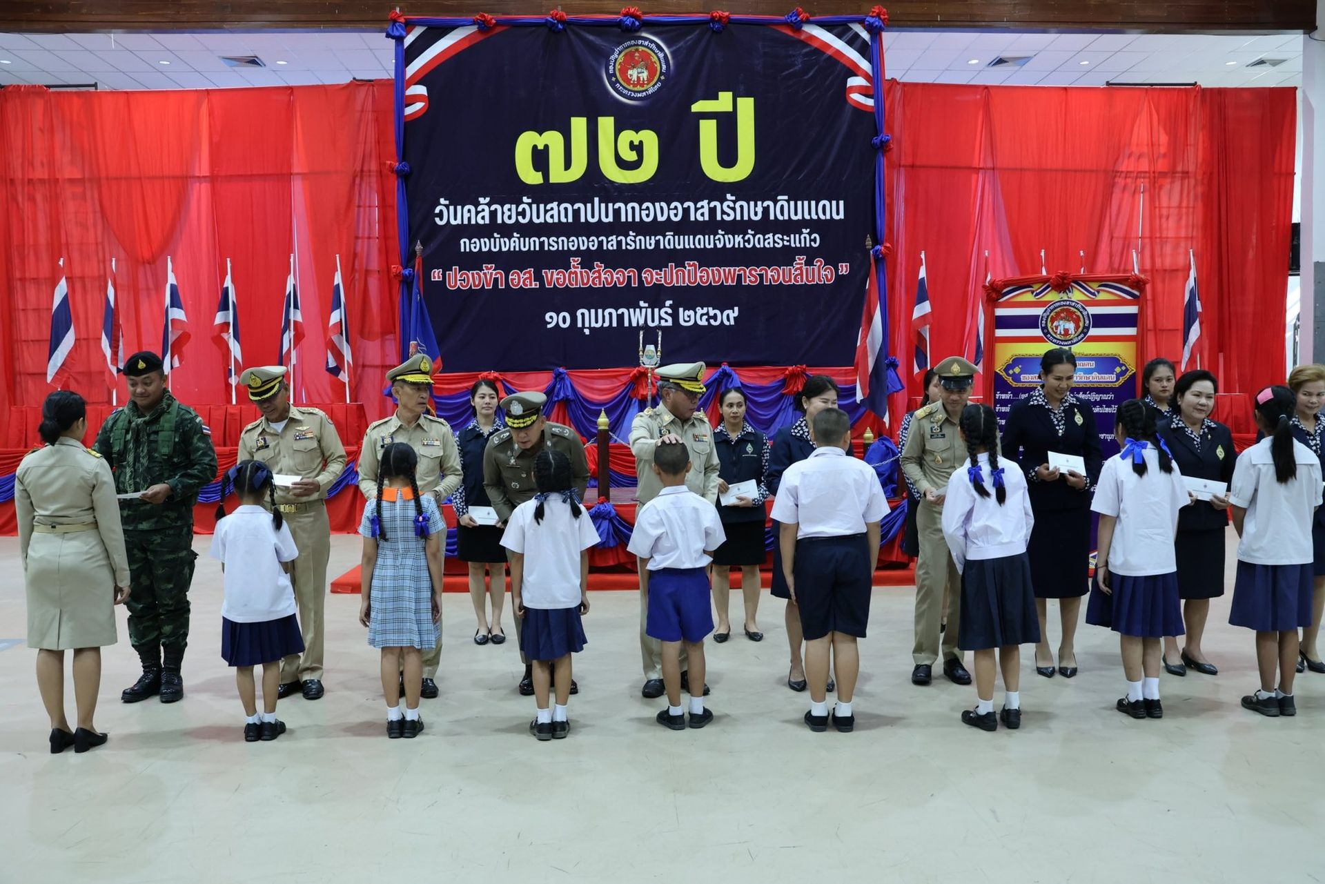 เมื่อวันที่ ๑๐ กุมภาพันธ์ ๒๕๖๙ ณ หอประชุมปางสีดา ศาลากลางจังหวัดสระแก้ว ตำบลท่าเกษม อำเภอเมืองสระแก้ว จังหวัดสระแก้ว นาวาอากาศเอก ทรงศักดิ์ ธรรมสาร ผู้บังคับการกองบิน ๓ มอบหมายให้ นาวาอากาศเอก สิโรตม์ บัวแก้ว เสนาธิการกองบิน ๓ ร่วมพิธีวันคล้ายวันสถาปนากองอาสารักษาดินแดน ครบรอบ ๗๒ ปี กองบังคับการกองอาสารักษาดินแดนจังหวัดสระแก้ว ประจำปี ๒๕๖๙ โดยมี นายกองเอก เชาวเนตร ยิ้มประเสริฐ รองผู้บังคับการกองอาสารักษาดินแดนจังหวัดสระแก้ว เป็นประธานในพิธี#กองทัพอากาศ#กองบิน3