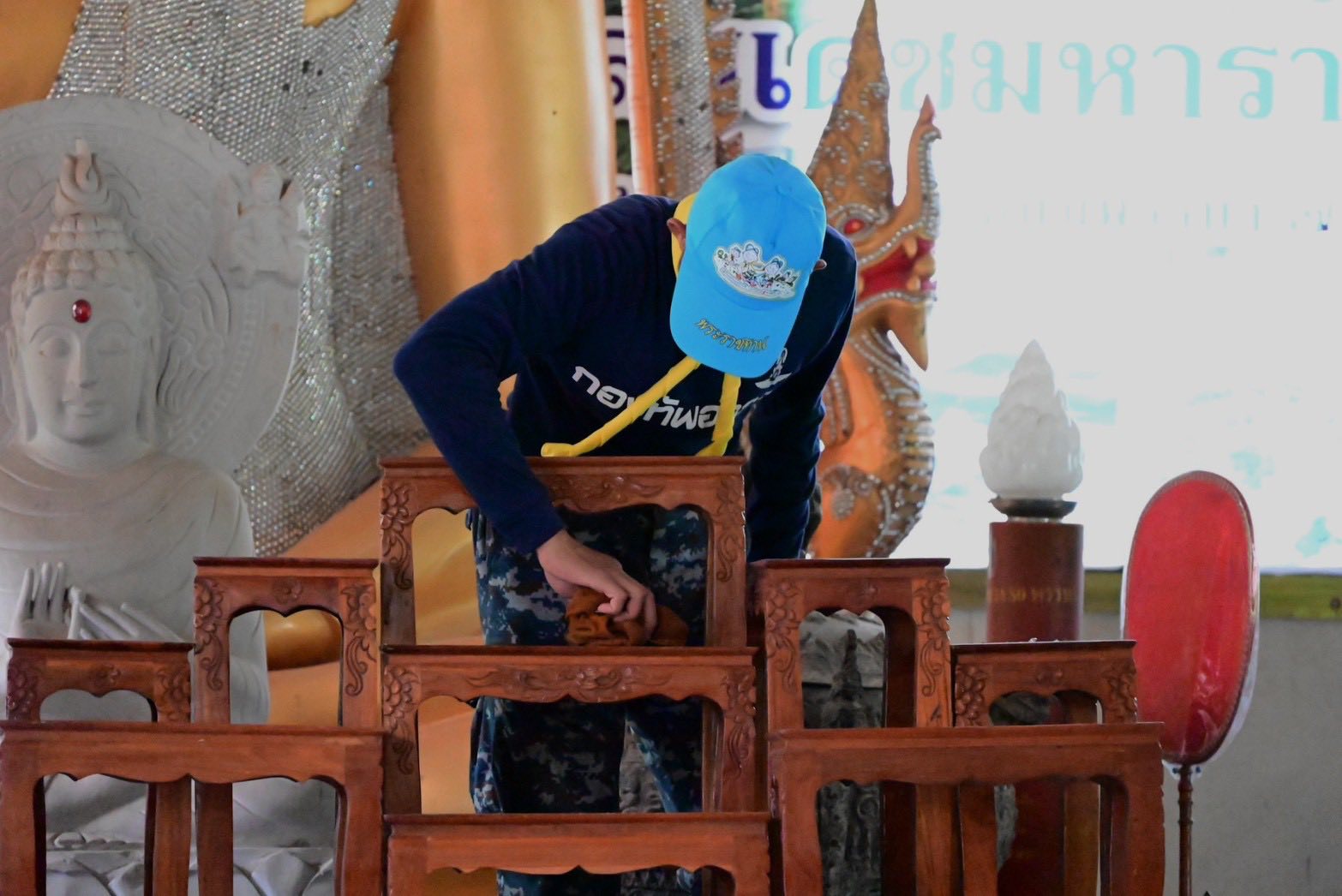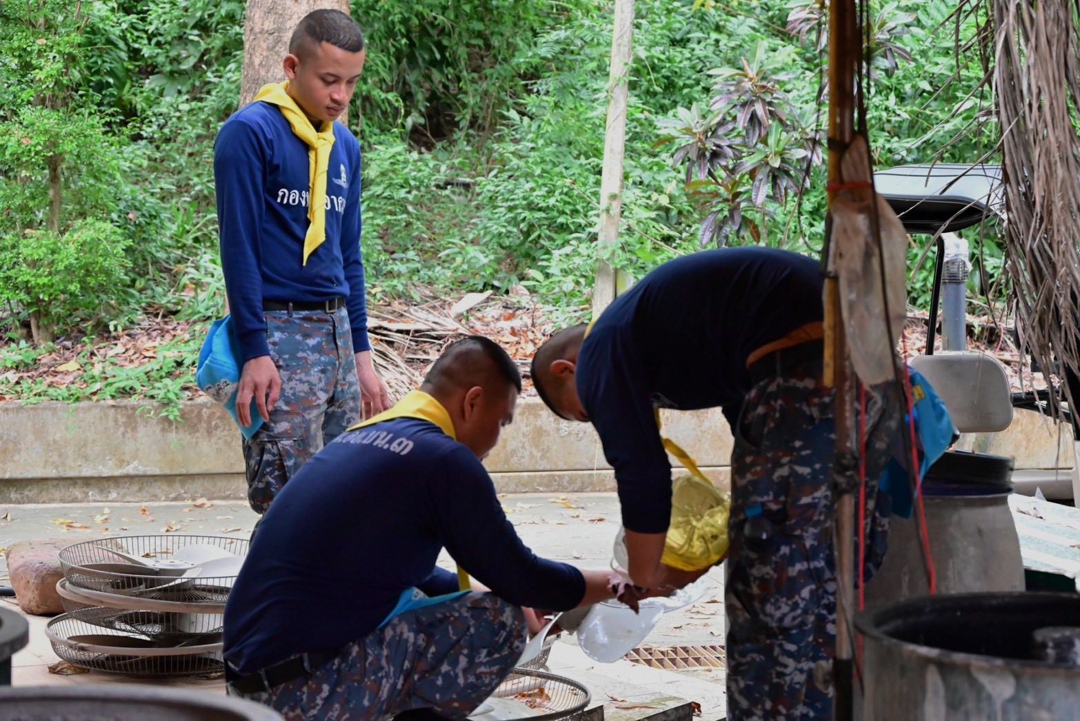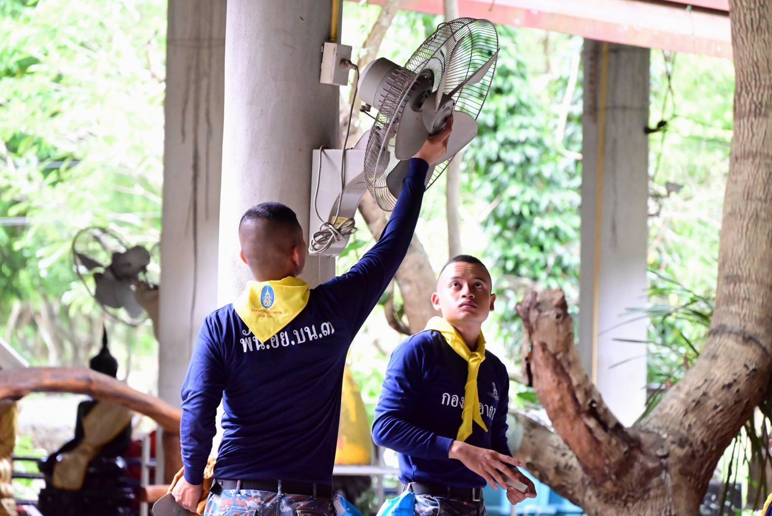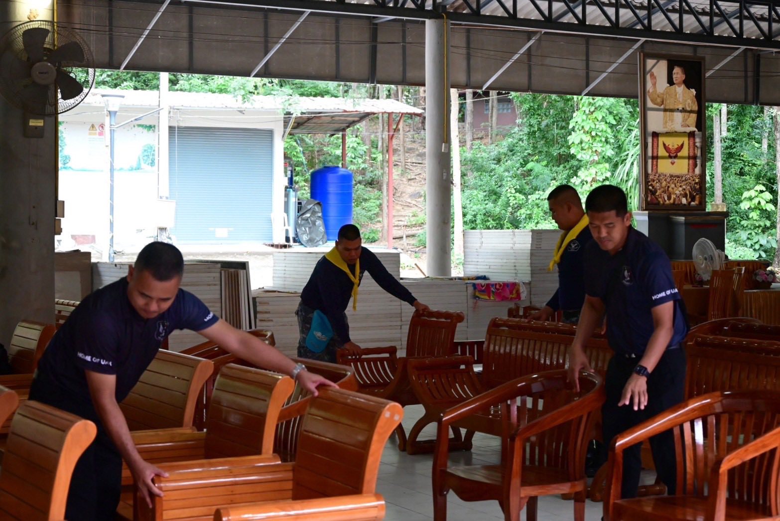 จิตอาสาพระราชทาน กองบิน ๓ ลงพื้นที่ให้ความช่วยเหลือในการปรับปรุงภูมิทัศน์และจัดสถานที่ เพื่อเตรียมการจัดงานทอดกฐินสามัคคี จังหวัดจันทบุรี