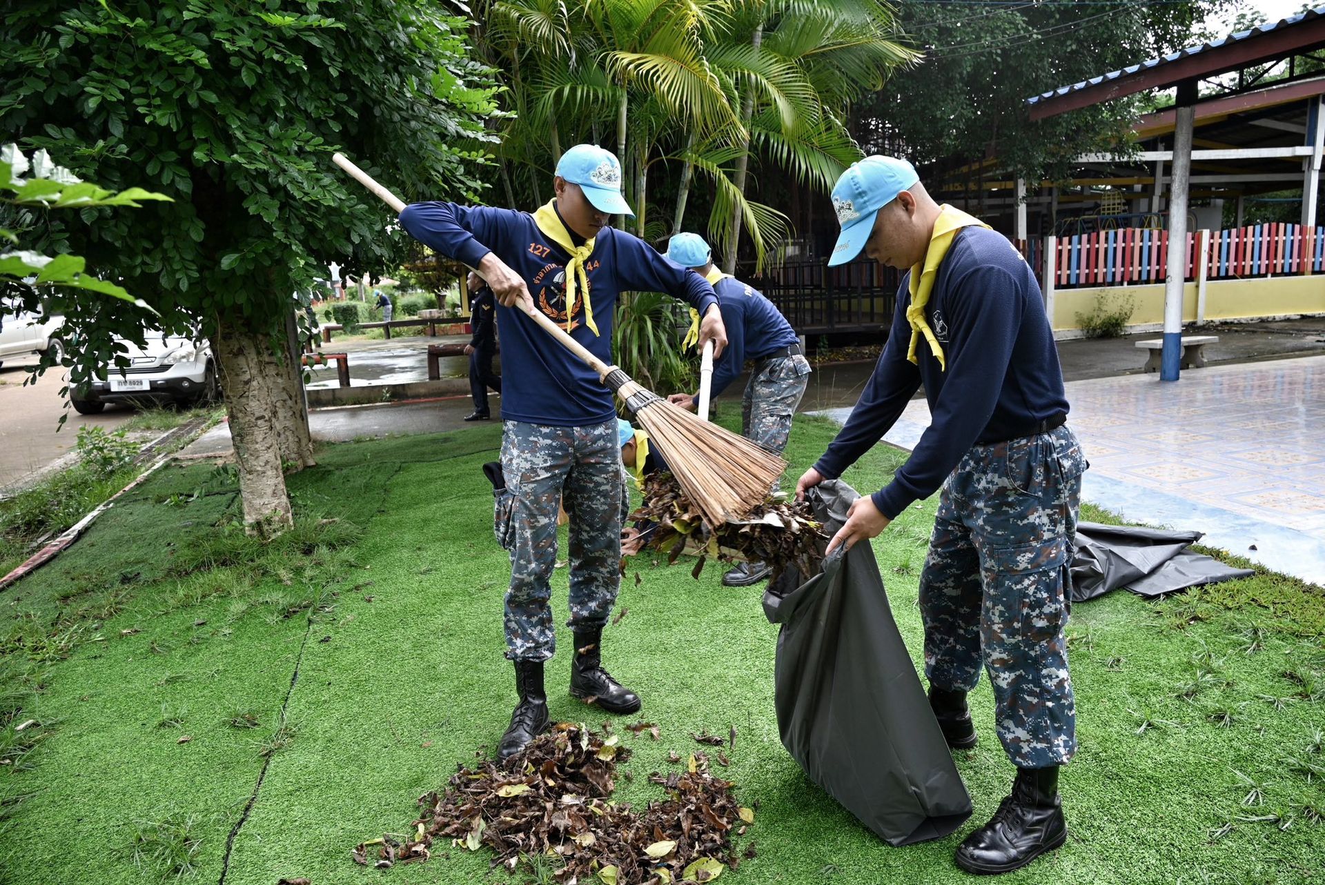 จิตอาสาพระราชทาน กองบิน ๓ ลงพื้นที่ให้ความช่วยเหลือในการปรับปรุงภูมิทัศน์บริเวณโดยรอบโรงเรียนบ้านท่าเกวียน จังหวัดสระแก้ว