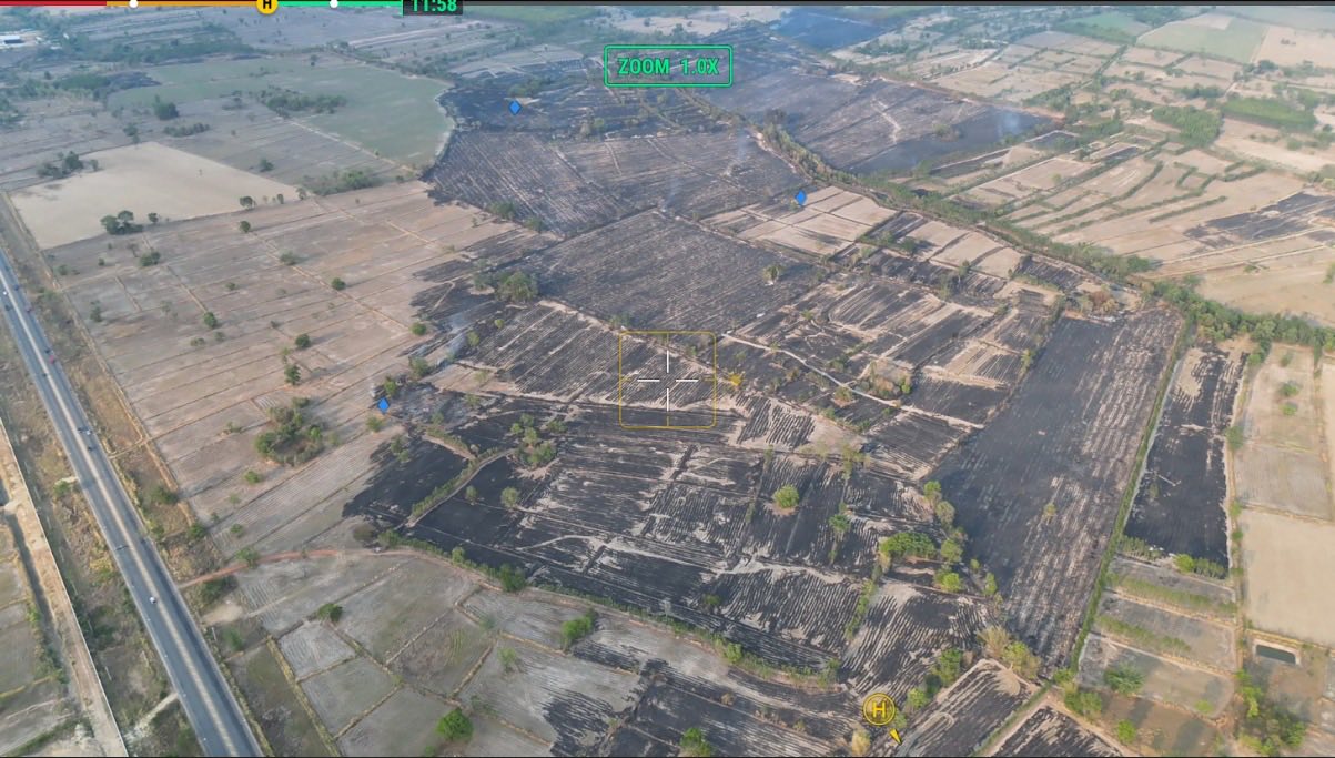 ในการนี้ นาวาอากาศเอก ทรงศักดิ์ ธรรมสาร ผู้บังคับการกองบิน ๓ ในฐานะผู้อำนวยการศูนย์บรรเทาสาธารณภัย กองบิน ๓ ได้มอบหมายให้ ศูนย์บรรเทาสาธารณภัย กองบิน ๓ ใช้ขีดความสามารถของอากาศยานไร้คนขับ (Drone) ทำการบินตรวจการณ์และประเมินสถานการณ์ เพื่อสนับสนุนข้อมูลด้านพื้นที่และทิศทางการลุกลามของไฟ พร้อมทั้งได้สนธิกำลังนำรถดับเพลิง กำลังพล ยุทโธปกรณ์ต่าง ๆ ร่วมกับเทศบาลตำบลวัฒนานคร และ อบต.โนนหมากเค็ง อบต.หนองแวง อ.วัฒนานคร เข้าดำเนินการควบคุมและดับไฟ #ใจถึงใจไปทันที#กองทัพอากาศเคียงข้างประชาชน#กองทัพอากาศ#กองบิน๓#กำลังใจเพื่อปวงชนกำลังพลเพื่อประชา#สระแก้ว