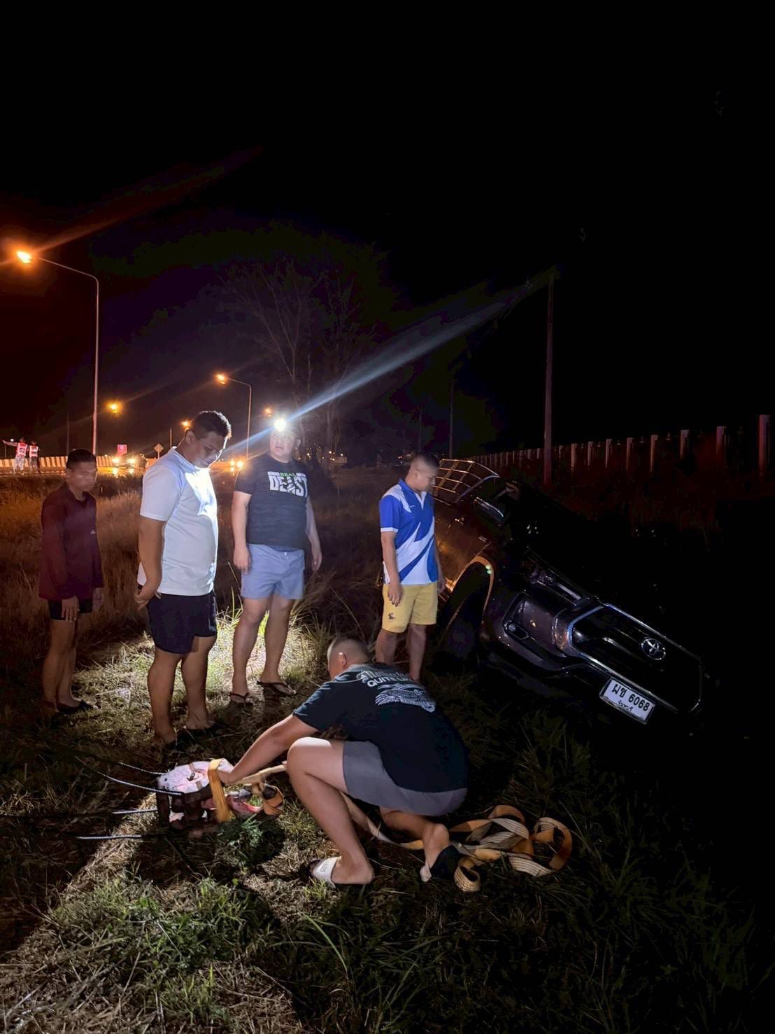 กองบิน ๓ ให้การช่วยเหลือประชาชนที่ประสบอุบัติเหตุรถยนต์ลื่นไถลตกข้างทาง