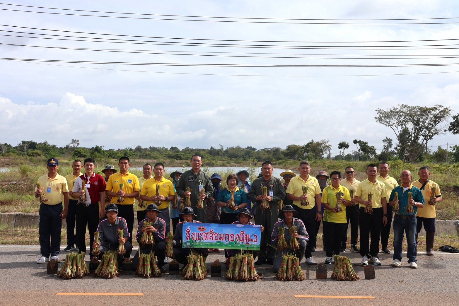 เมื่อวันที่ ๒๖ สิงหาคม ๒๕๖๘ นาวาอากาศเอก ทรงศักดิ์ ธรรมสาร ผู้บังคับการกองบิน ๓ มอบหมายให้ นาวาอากาศเอก อาจณรงค์ กองนิล รองผู้บังคับการกองบิน ๓ นำข้าราชการกองบิน ๓ เข้าร่วมกิจกรรมโครงการรณรงค์และส่งเสริมการปลูกหญ้าแฝก เพื่อการผลิตหญ้าแฝกมาปรับปรุงบำรุงดินโครงการดังกล่าวดำเนินการโดยสถานีพัฒนาที่ดินสระแก้ว ภายใต้แผนปฏิบัติการผลิตกล้าหญ้าแฝกเพื่อปลูก ประจำปีงบประมาณ ๒๕๖๘ เป้าหมาย ๓๐๐,๐๐๐ กล้า ในพื้นที่อำเภอเมือง และอำเภอวัฒนานคร จังหวัดสระแก้ว เพื่ออนุรักษ์ทรัพยากรดินและน้ำ ใช้ที่ดินอย่างเหมาะสม ป้องกันการชะล้างพังทลายของหน้าดิน พร้อมทั้งสร้างความตระหนักให้เกษตรกรเห็นความสำคัญ และนำหญ้าแฝกไปใช้ประโยชน์ในการเกษตรอย่างแพร่หลาย