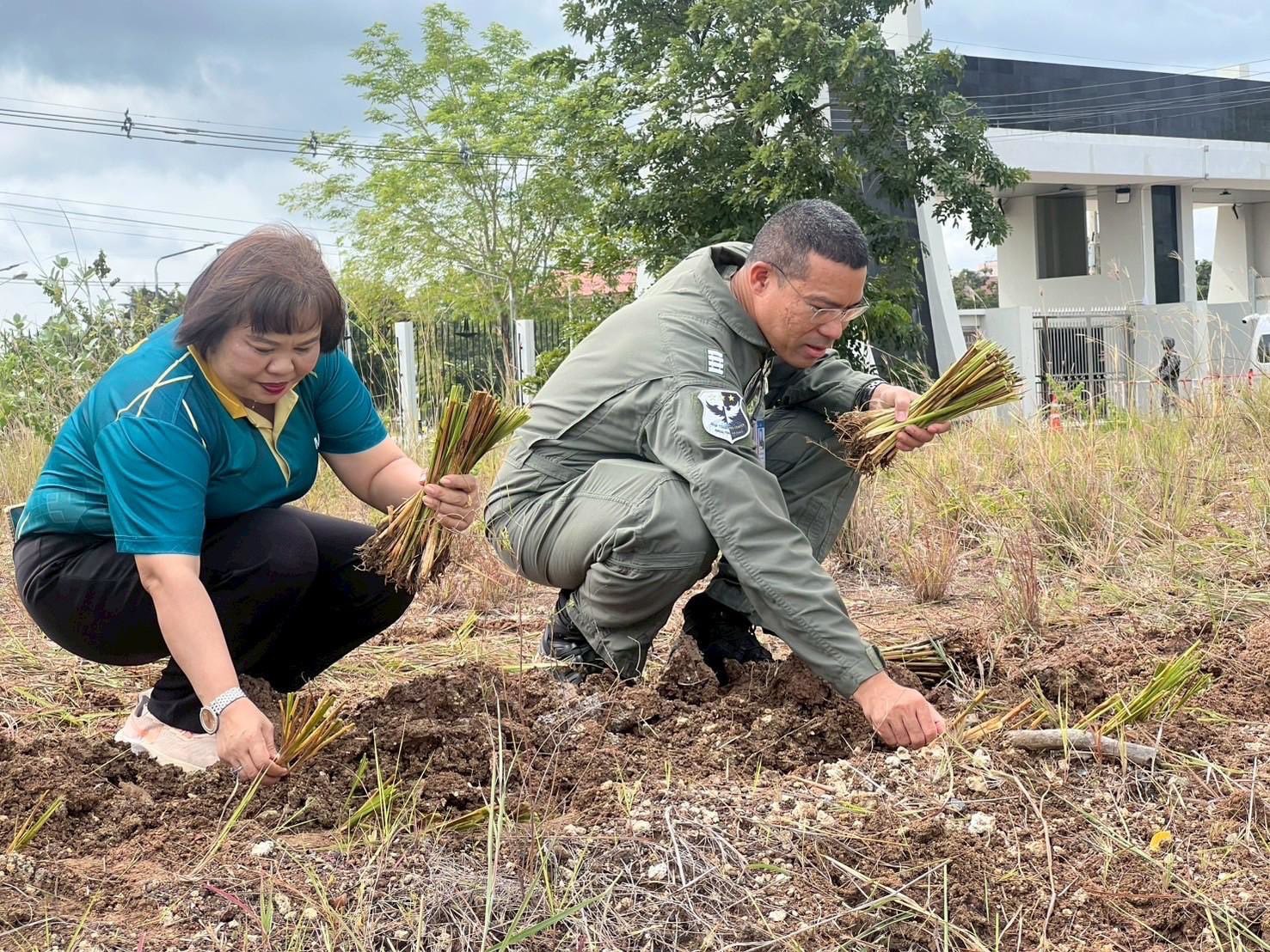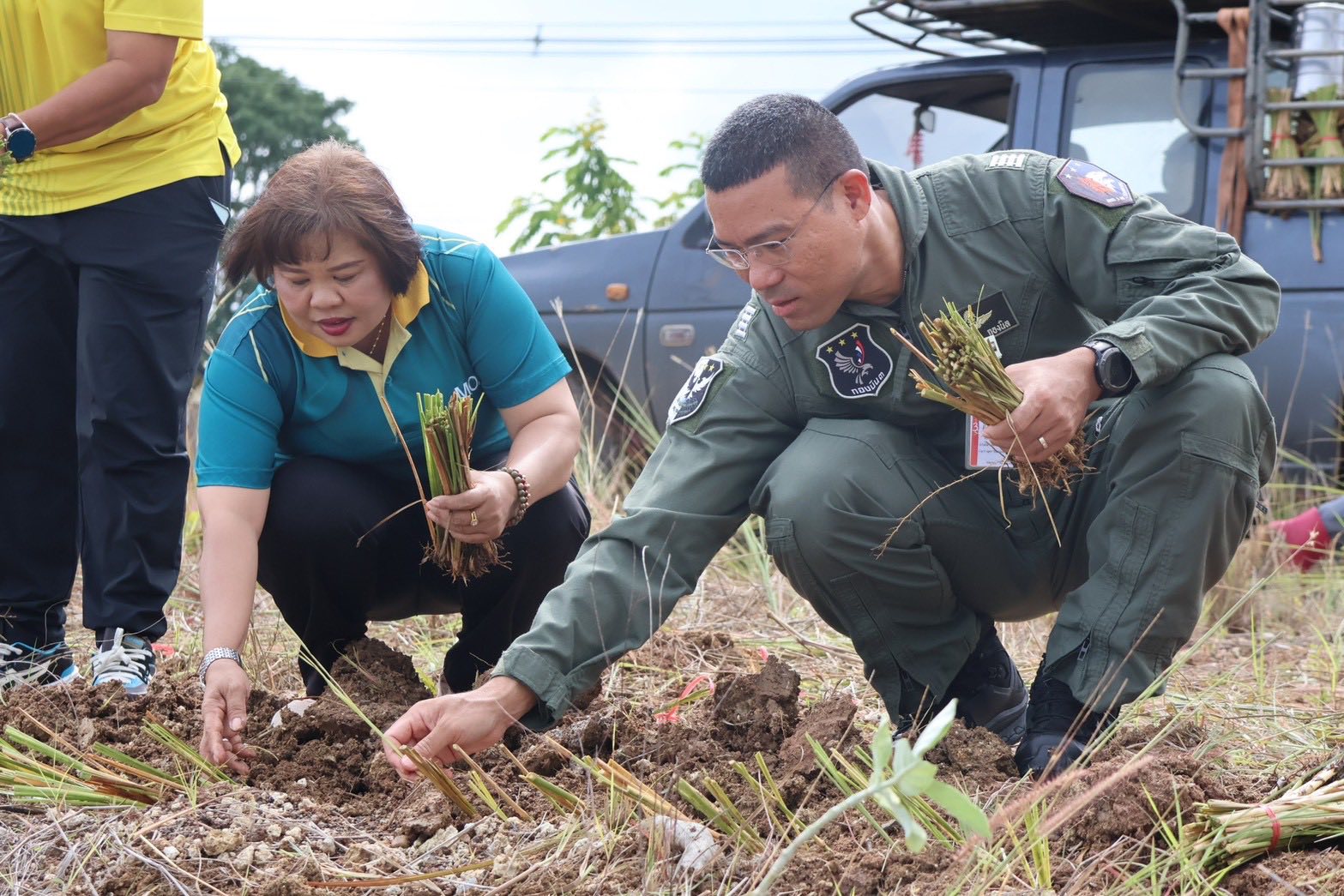 กองบิน 3 จัดกิจกรรมร่วมกับกรมพัฒนาที่ดิน ในโครงการรณรงค์ และส่งเสริมการปลูกหญ้าแฝก เพื่อการผลิตหญ้าแฝกมาปรับปรุงบำรุงดิน