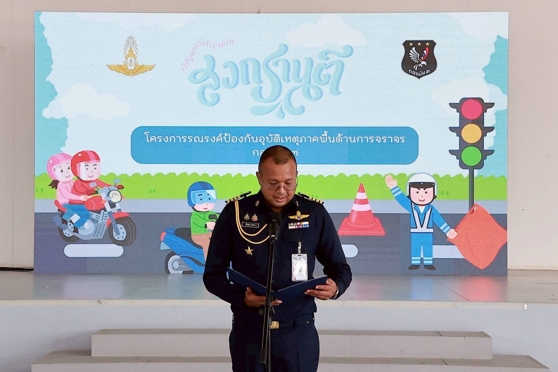 กองบิน ๓ จัดโครงการรณรงค์ป้องกันอุบัติเหตุภาคพื้นด้านจราจรในเทศกาลสงกรานต์