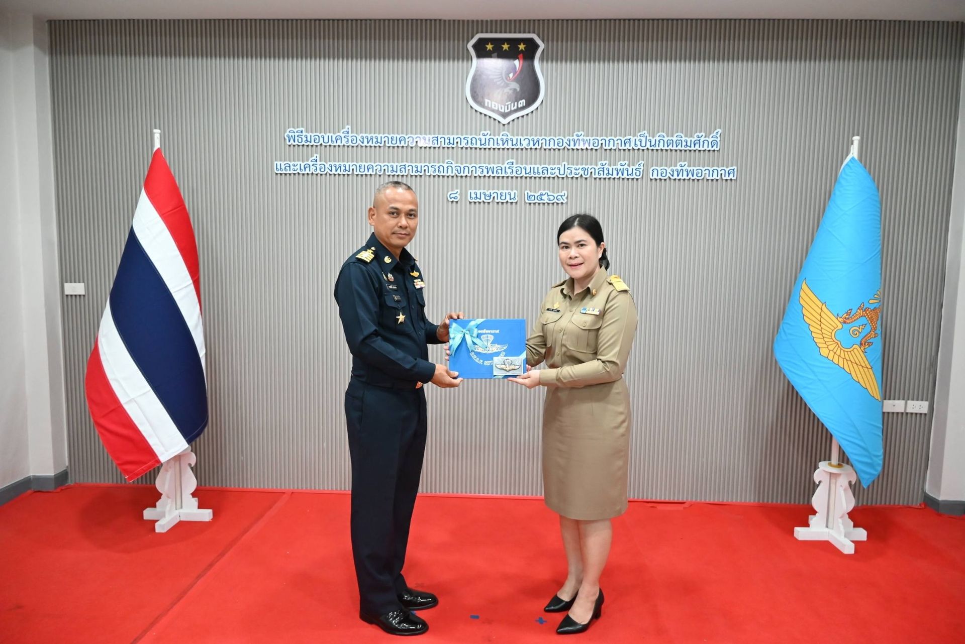 กองบิน ๓ จัดพิธีมอบเครื่องหมายแสดงความสามารถเหินเวหากองทัพอากาศเป็นกิตติมศักดิ์และเครื่องหมายความสามารถกิจการพลเรือนและประชาสัมพันธ์ของกองทัพอากาศ