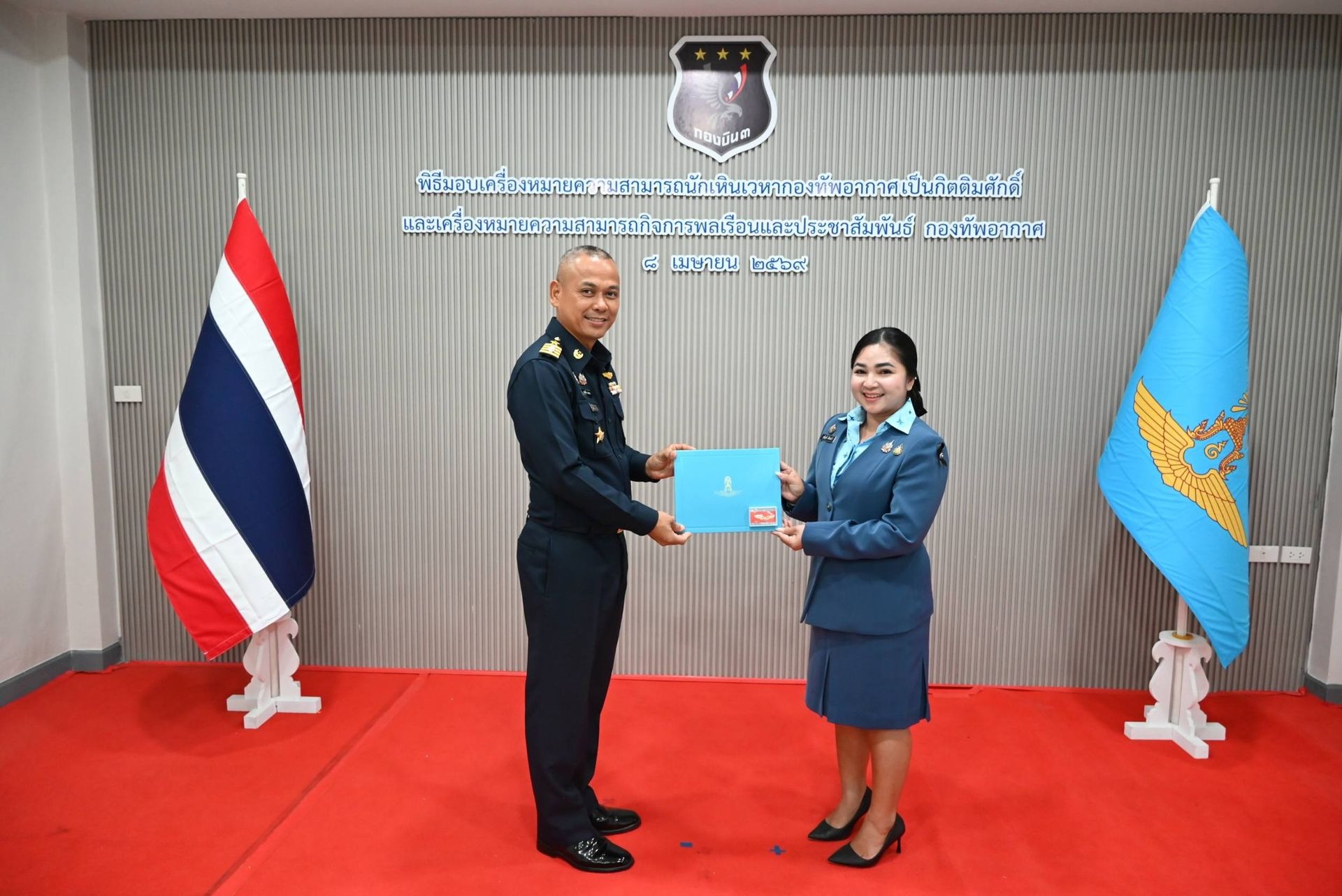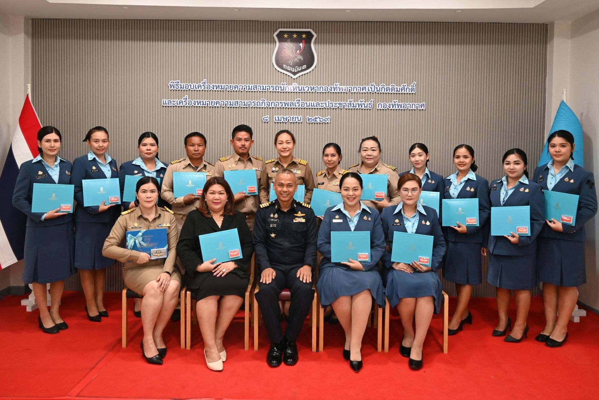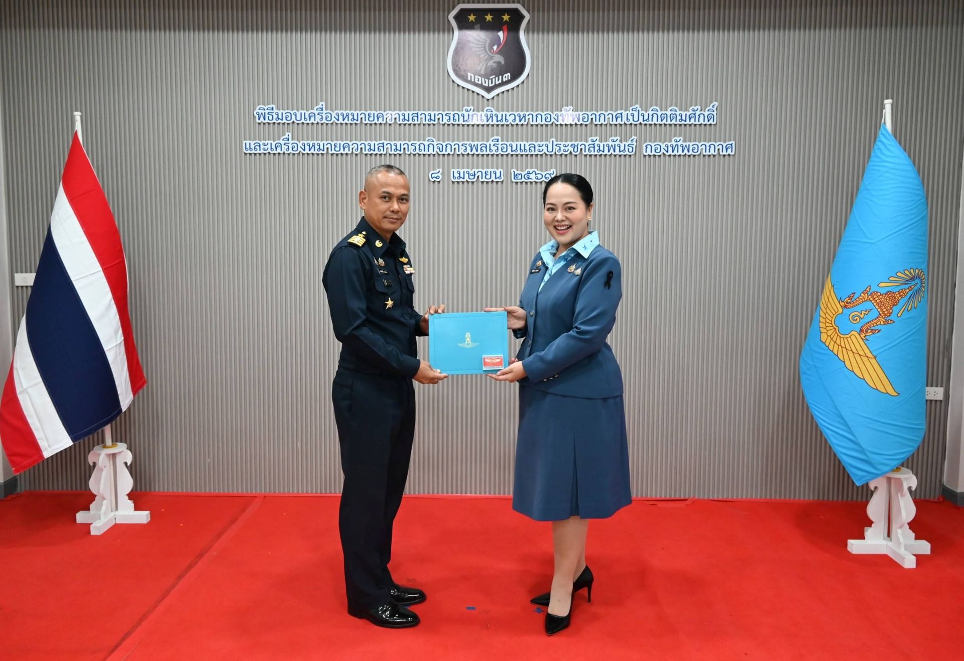 เมื่อวันที่ ๘ เมษายน ๒๕๖๙นาวาอากาศเอก ทรงศักดิ์ ธรรมสาร ผู้บังคับการกองบิน ๓ เป็นประธานในพิธีมอบเครื่องหมายแสดงความสามารถเหินเวหาเป็นกิตติมศักดิ์และเครื่องหมายความสามารถกิจการพลเรือนและประชาสัมพันธ์กองทัพอากาศ ให้แก่ คุณศิริภัสสร ธรรมสาร ประธานชมรมคู่สมรสทหารอากาศ กองบิน ๓ เรืออากาศโท หญิง ภิรญา พิธาฐิติกุล รองประธานชมรมคู่สมรสทหารอากาศ กองบิน ๓ผู้ช่วยศาสตราจารย์ ดร.นงนุช ศรีสุข อาจารย์ผู้ประจำหลักสูตรรัฐประศาสตรบัญฑิต คณะวิทยาศาสตร์และสังคมศาสตร์ มหาวิทยาลัยบูรพา วิทยาเขตสระแก้วคุณอรทัย สุรโคตร นักจัดการงานทั่วไปชำนาญการ องค์การบริหารส่วนจังหวัดสระแก้วคุณวิลาสินี เทียนทอง กำนันตำบลวัฒนานครคุณขนิษฐา แสงสี กำนันตำบลโนนหมากเค็งคุณประภวิษณุ์ เวชการ ผู้ใหญ่บ้านหมู่ที่๑ ตำบลโนนหมากเค็งคุณณรงค์ ปานสิงห์ ผู้ใหญ่บ้านหมู่ที่๖ ตำบลห้วยโจดคุณยุพิน เครือวงษ์ ผู้ใหญ่บ้านหมู่ที่๑๒ บ้านหนองแสง ตำบลวัฒนานครและ คณะกรรมการบริหารชมรมคู่สมรสทหารอากาศ กองบิน ๓เพื่อเป็นเครื่องหมายเชิดชูเกียรติ เป็นสัญลักษณ์แสดงถึงความเสียสละเพื่อประโยชน์ของกองทัพอากาศ และประเทศชาติ แสดงถึงความเป็นครอบครัวที่มีน้ำหนึ่งใจเดียวกันพร้อมที่จะประสานการทำงานให้สอดคล้องกันเพื่อพัฒนากองทัพอากาศ และประเทศชาติให้เจริญก้าวหน้าสืบไป#กองทัพอากาศ #กองบิน3