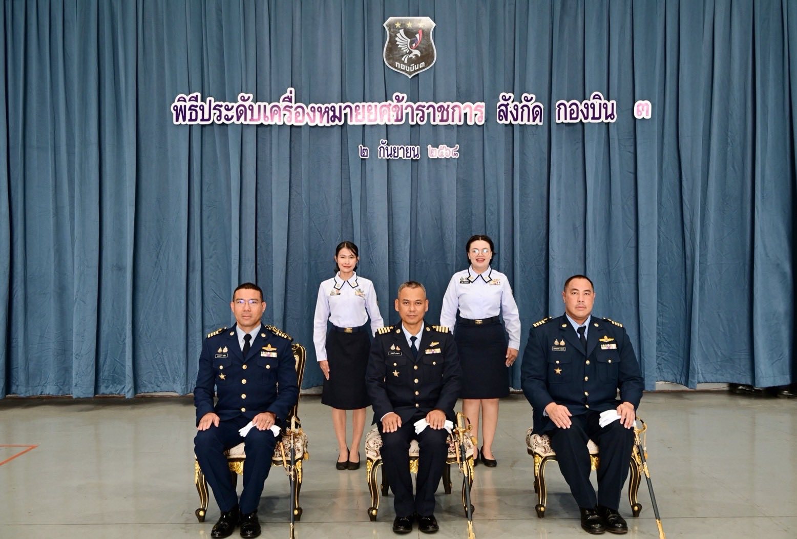 เมื่อวันที่ ๒ กันยายน ๒๕๖๘ ณ กองบิน ๓ นาวาอากาศเอก ทรงศักดิ์ ธรรมสาร ผู้บังคับการกองบิน ๓ เป็นประธานในพิธีประดับเครื่องหมายยศนายทหารชั้นสัญญาบัตร และนายทหารชั้นประทวน สังกัด กองบิน ๓ ที่ได้รับการเลื่อนยศสูงขึ้น โดยมี รองผู้บังคับการกองบิน ๓, หัวหน้าหน่วยขึ้นตรง กองบิน ๓, ข้าราชการ กองบิน ๓ และครอบครัว ร่วมเป็นเกียรติ และแสดงความยินดีกับผู้เข้ารับการประดับเครื่องหมายยศ ในครั้งนี้#กองทัพอากาศ#กองบิน3