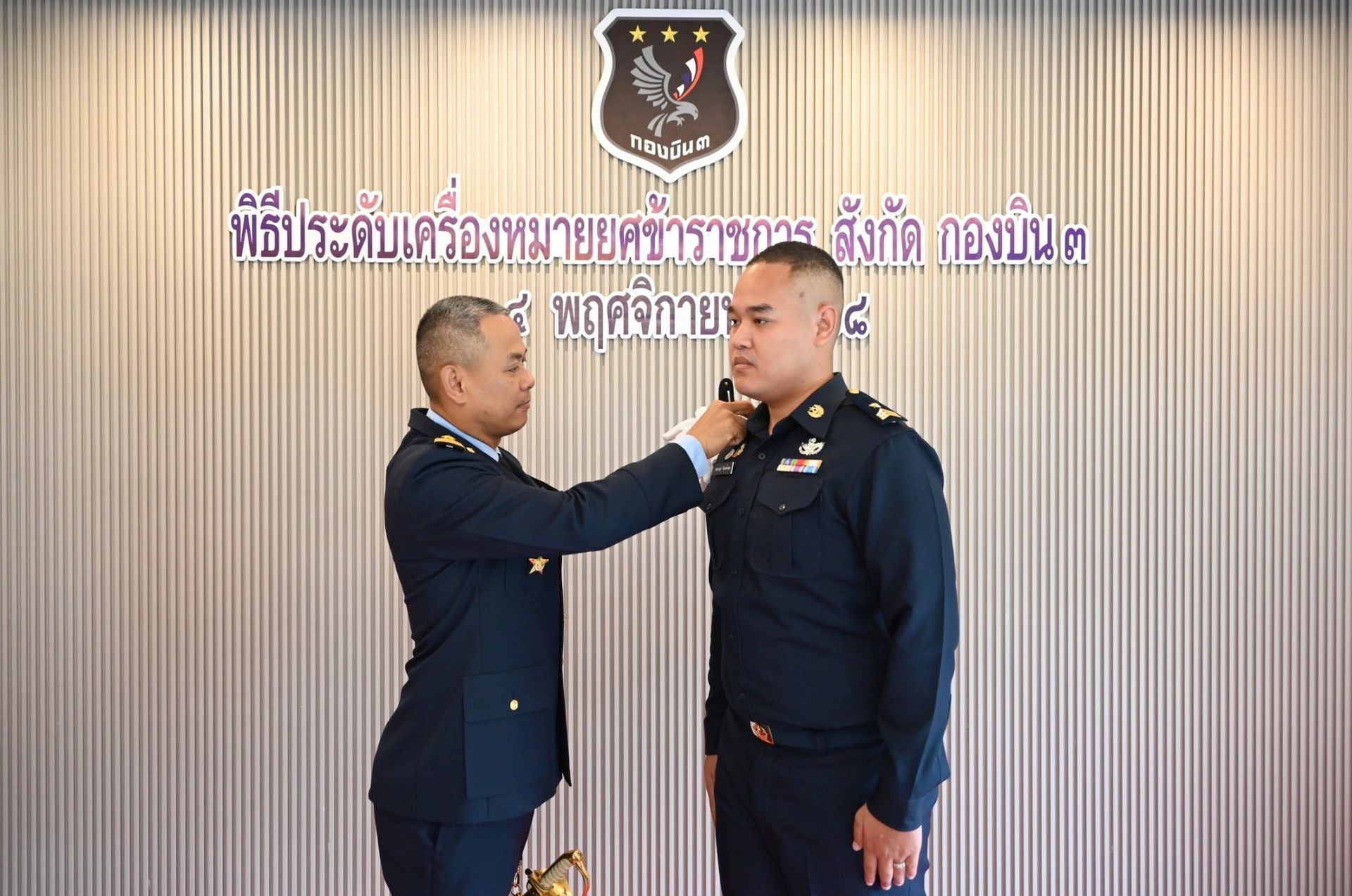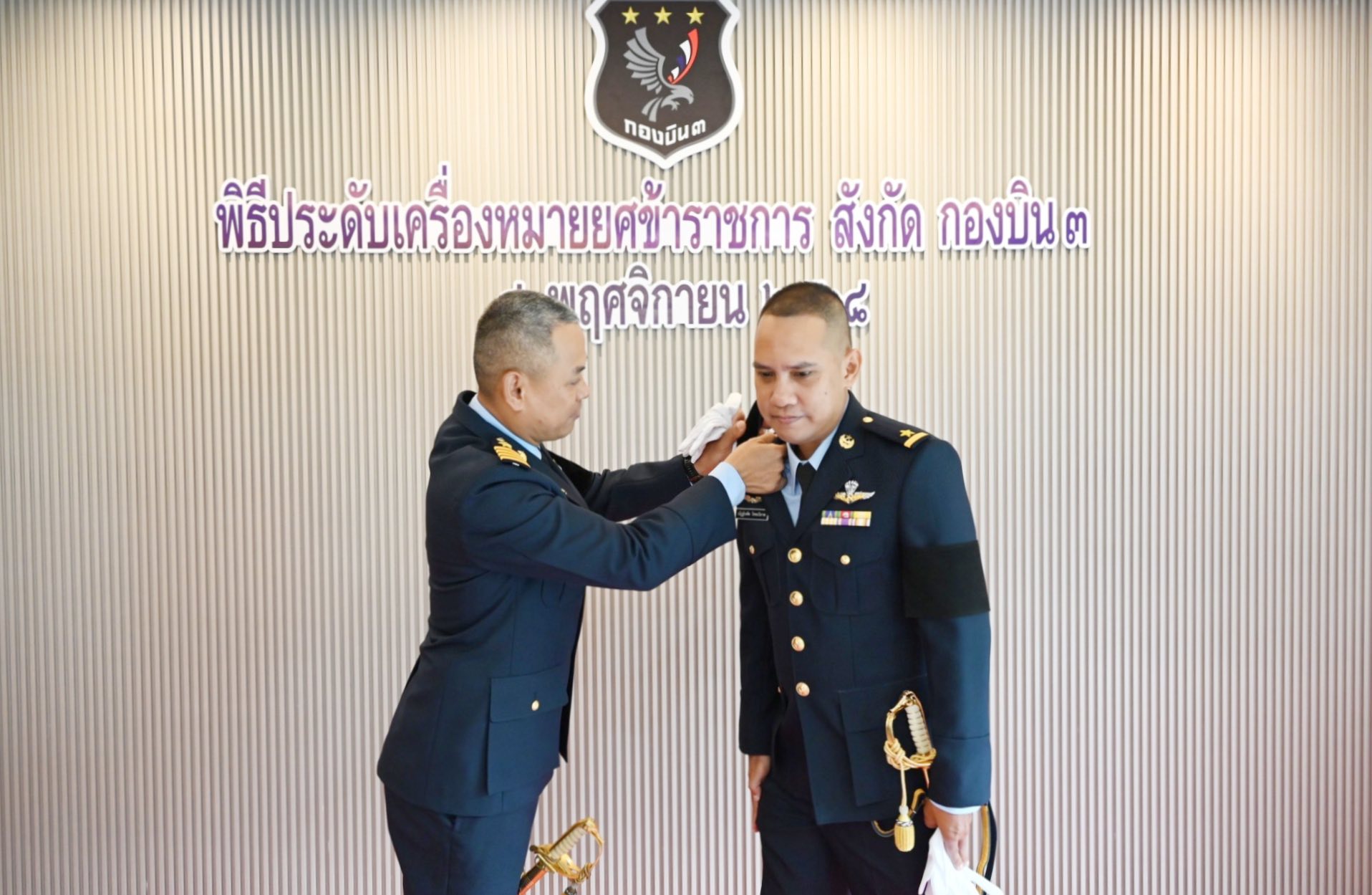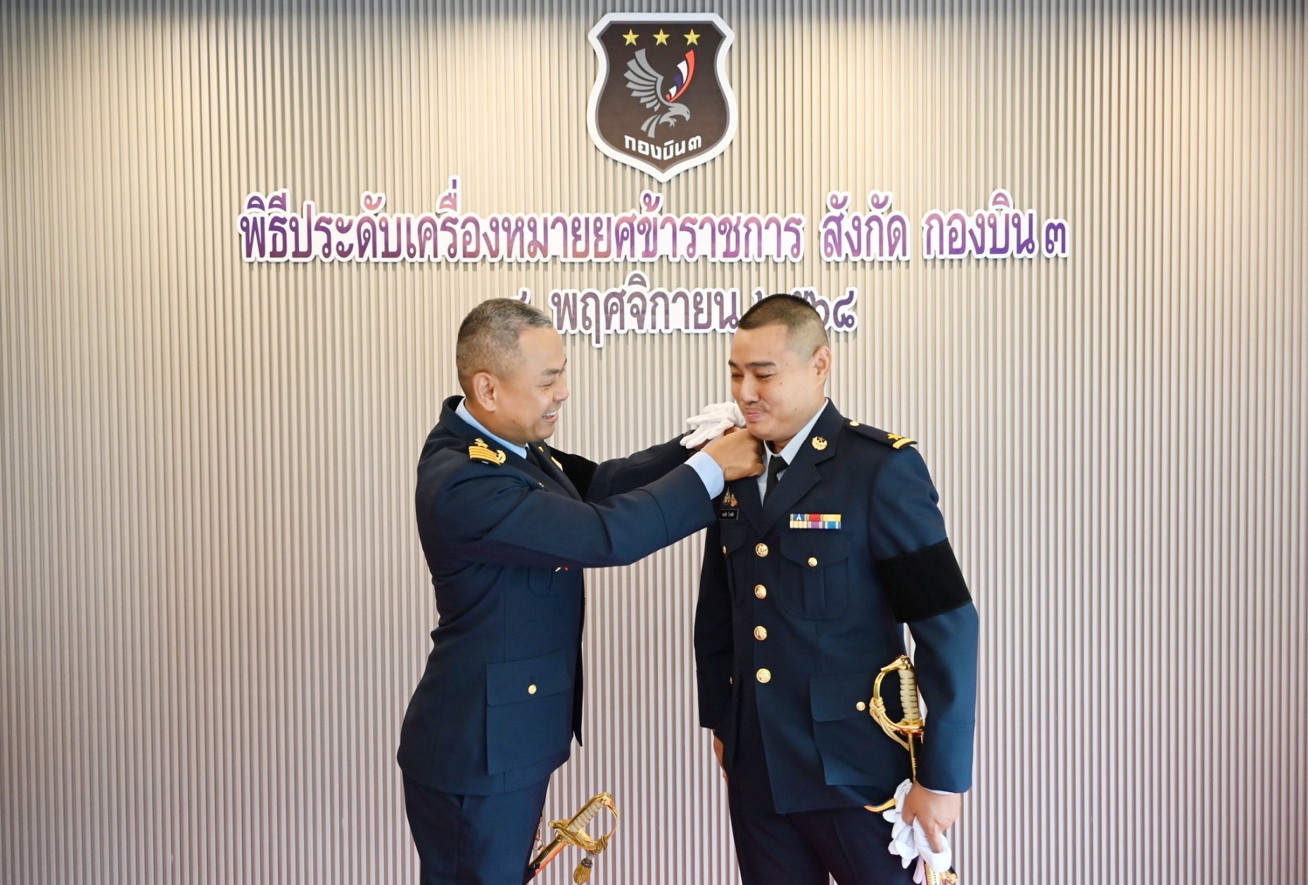 กองบิน ๓ จัดพิธีประดับเครื่องหมายยศนายทหารชั้นสัญญาบัตร และนายทหารชั้นประทวน