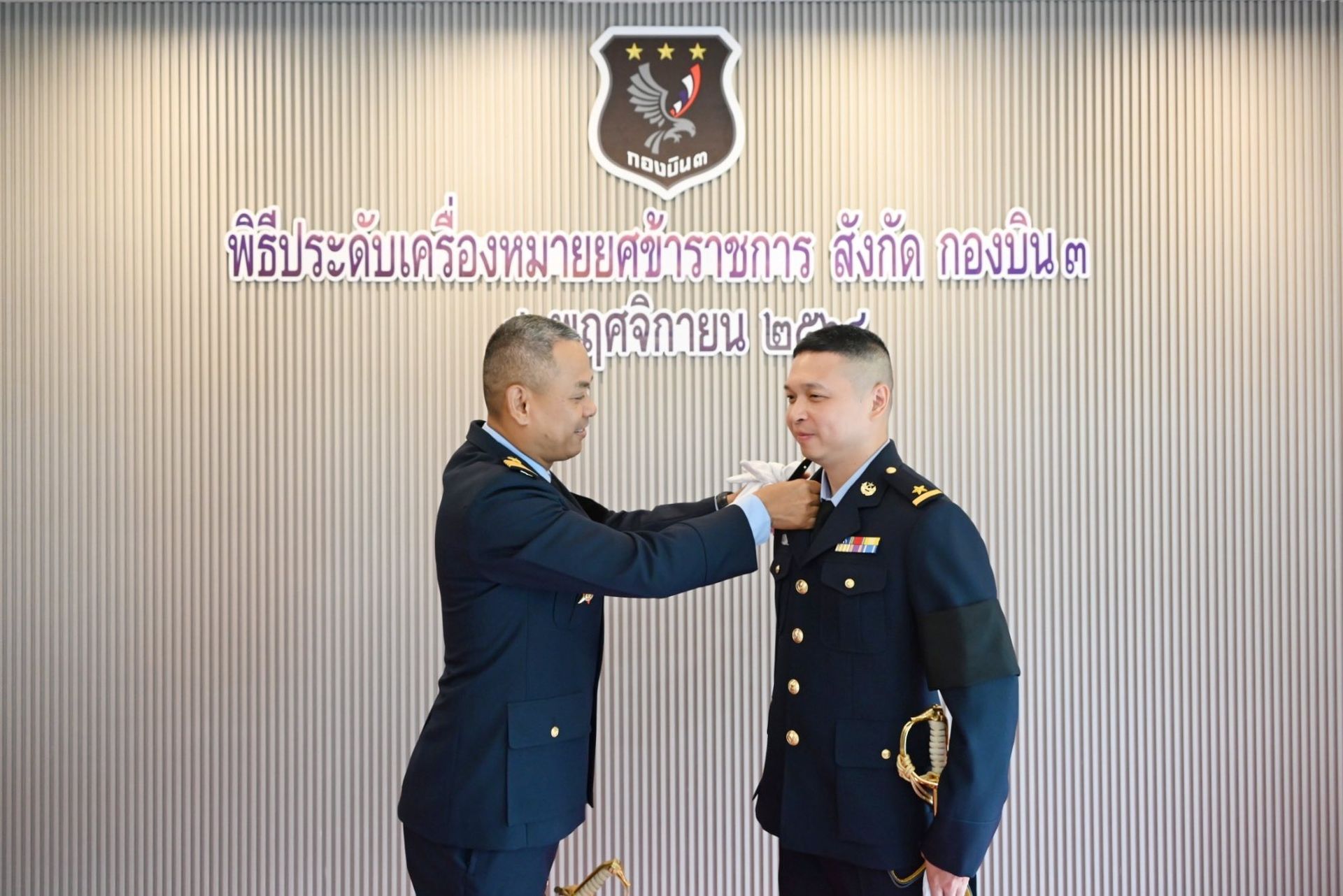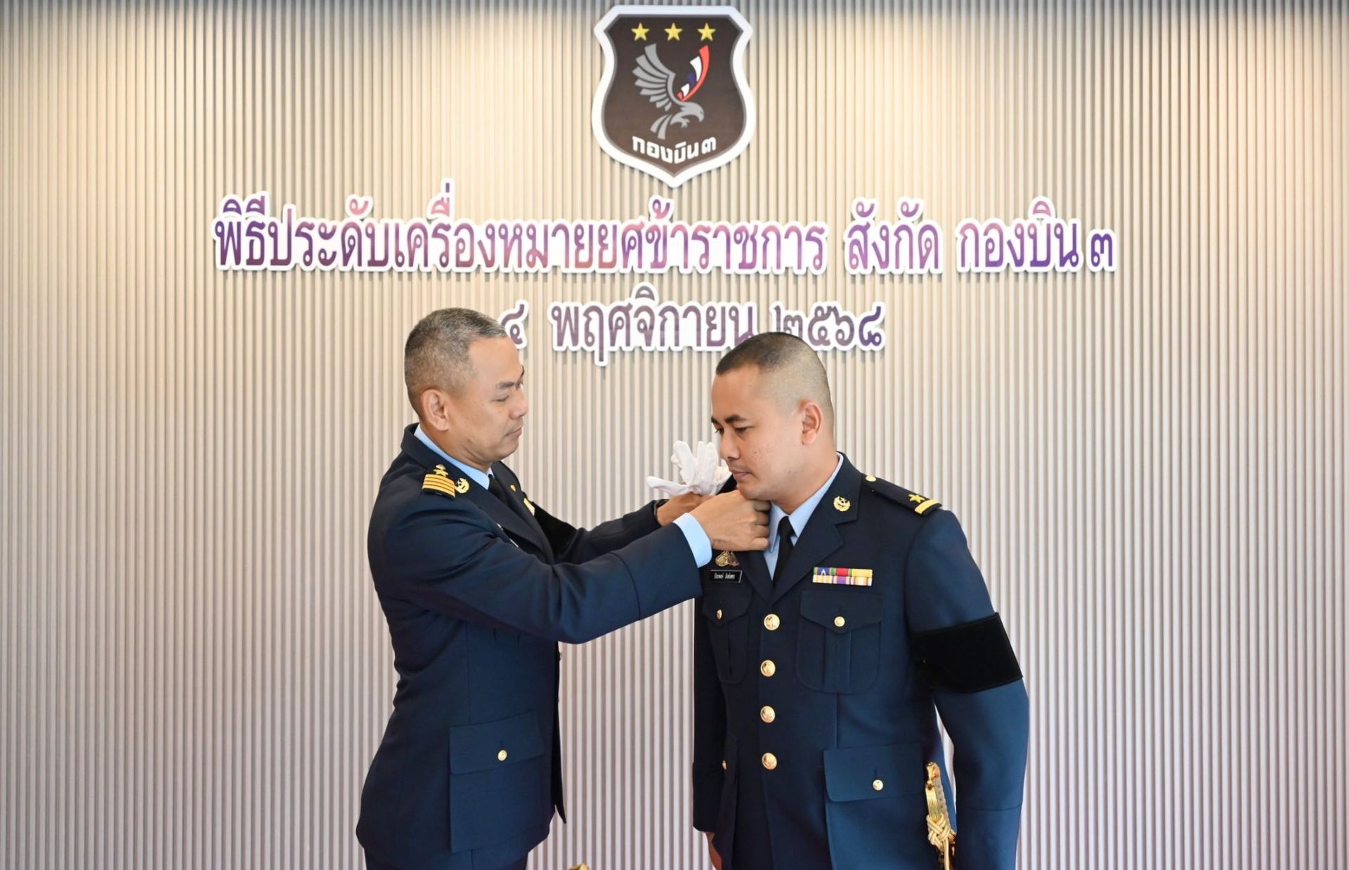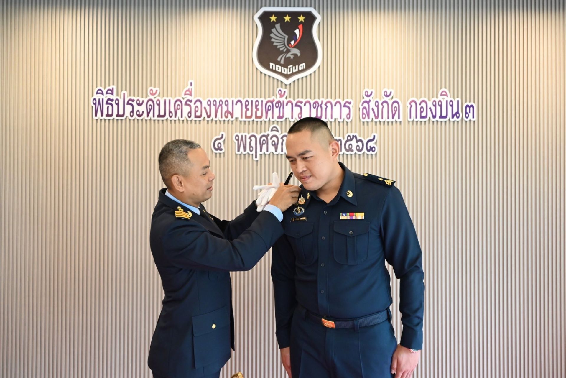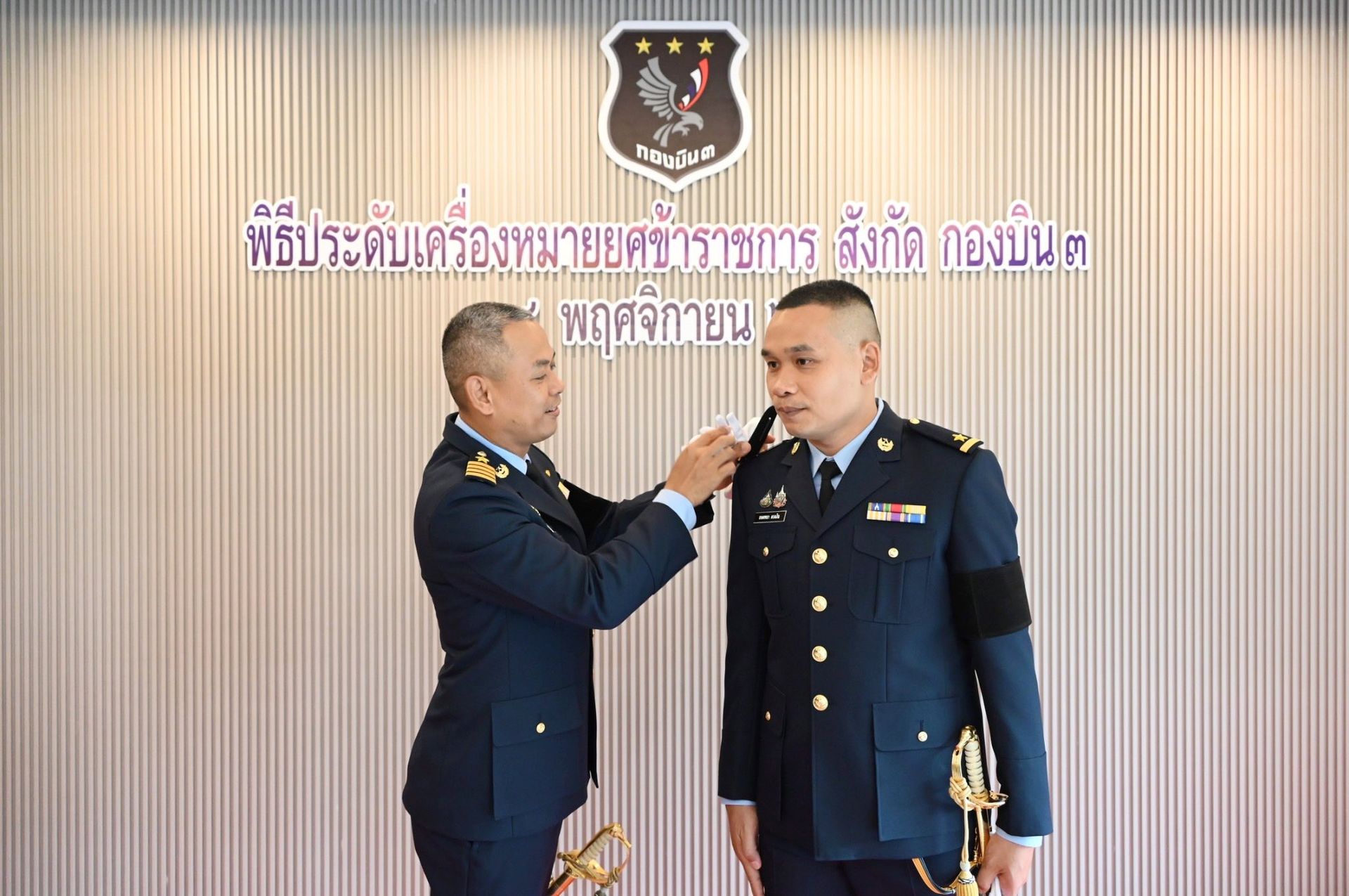 กองบิน ๓ จัดพิธีประดับเครื่องหมายยศนายทหารชั้นสัญญาบัตร และนายทหารชั้นประทวน