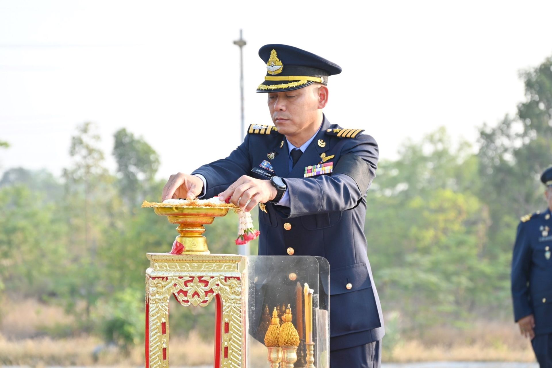 เมื่อวันที่ ๙ เมษายน ๒๕๖๙ ณ กองบิน ๓ นาวาอากาศเอก นาวาอากาศเอก ทรงศักดิ์ ธรรมสาร ผู้บังคับการกองบิน ๓ นำข้าราชการ วางพวงมาลาถวายสักการะพระอนุสาวรีย์ จอมพลสมเด็จพระเจ้าบรมวงศ์เธอ เจ้าฟ้าจักรพงษ์ภูวนารถ กรมหลวงพิศณุโลกประชานารถ “พระบิดาแห่งกองทัพอากาศไทย” เนื่องในวันกองทัพอากาศ ๙ เมษายน ประจำปี ๒๕๖๙ เพื่อความเป็นสิริมงคลแก่กำลังพล และสร้างขวัญกำลังใจในการทำงาน#กองทัพอากาศ#กองบิน3