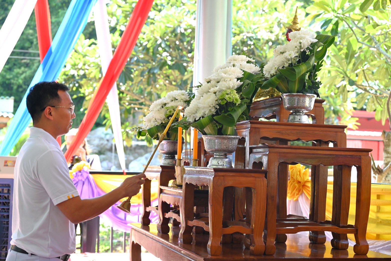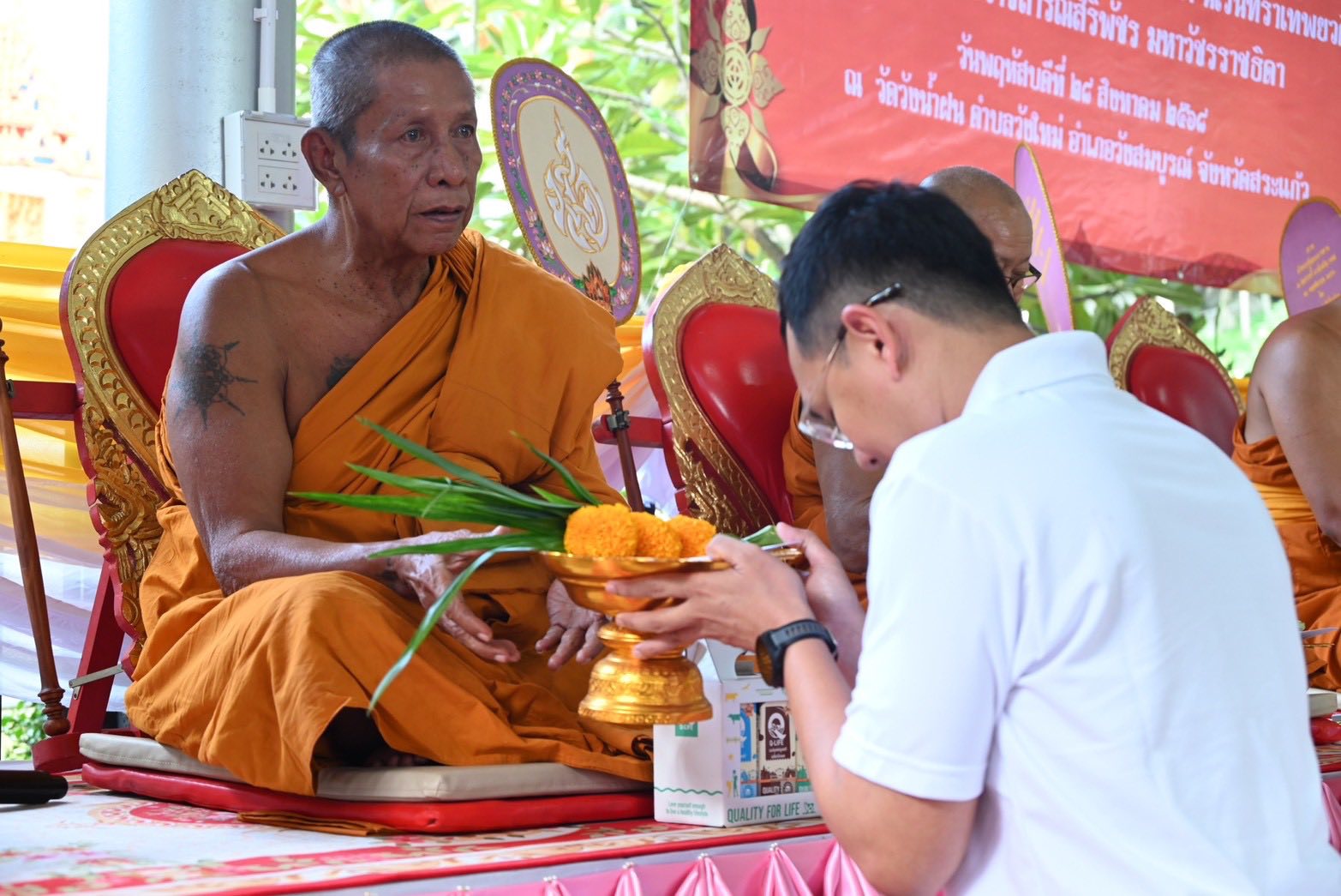 เมื่อวันที่ ๒๘ สิงหาคม ๒๕๖๘ ณ วัดวังน้ำฝน ตำบลวังใหม่ อำเภอวังสมบูรณ์ จังหวัดสระแก้ว นาวาอากาศเอก ทรงศักดิ์ ธรรมสาร ผู้บังคับการกองบิน ๓ มอบหมายให้ นาวาอากาศโท นราธิป ชุบขุนทด ร่วมพิธีเจริญพระพุทธมนต์ถวายพระพรชัยมงคลแด่พระบาทสมเด็จพระเจ้าอยู่หัว และพระบรมวงศานุวงศ์ ประจำปี ๒๕๖๘ เพื่อเป็นการถวายพระพรชัยมงคล และเป็นการแสดงออกถึงความจงรักภักดีต่อสถาบันพระมหากษัตริย์ โดยมี นายธนกิจ โชติประดิษฐ์ อัยการจังหวัดประจำสำนักงานอัยการสูงสุด (ผู้กลั่นกรองงาน) สำนักงานอัยการคุ้มครองสิทธิและช่วยเหลือทางกฎหมายจังหวัดสระแก้ว เป็นประธานในพิธี
