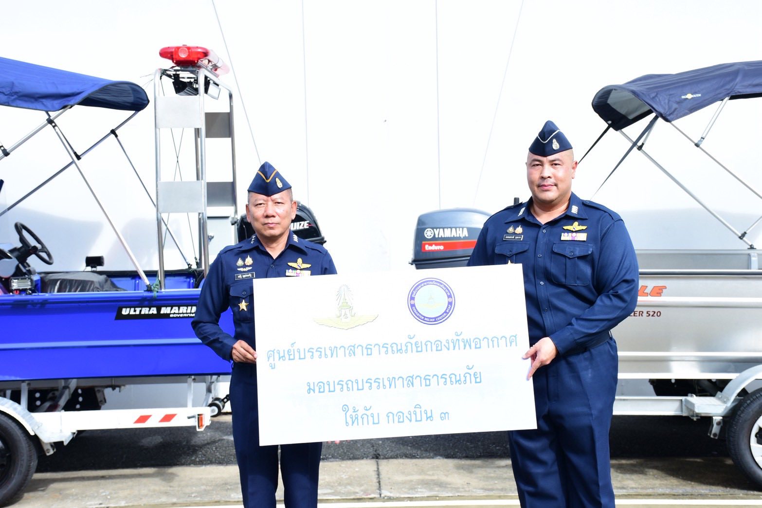กองบิน ๓ ร่วมพิธีส่งมอบรถยนต์และเรือด้านบรรเทาสาธารณภัย เพื่อให้หน่วยมีความพร้อมในการปฏิบัติหน้าที่ช่วยเหลือประชาชน
