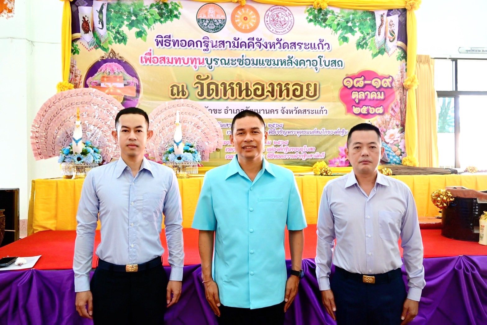 เมื่อวันที่ ๑๙ ตุลาคม ๒๕๖๘ ณ วัดหนองหอย ตำบลผักขะ อำเภอวัฒนานคร จังหวัดสระแก้ว นาวาอากาศเอก ทรงศักดิ์ ธรรมสาร ผู้บังคับการกองบิน ๓ มอบหมายให้ นาวาอากาศเอก ชัชนันท์ กันภัย รองผู้บังคับการกองบิน ๓ เข้าร่วมพิธีทอดกฐินสามัคคี จังหวัดสระแก้ว ประจำปี ๒๕๖๘ โดยมี นายเชาวเนตร ยิ้มประเสริฐ รองผู้ว่าราชการจังหวัดสระแก้ว เป็นประธานในพิธีการจัดพิธีทอดกฐินในครั้งนี้ มีวัตถุประสงค์เพื่อบำรุงพระพุทธศาสนาให้เจริญรุ่งเรือง บูรณะศาสนสถาน ตลอดจนส่งเสริมและอนุรักษ์ขนบธรรมเนียมประเพณีอันดีงามเพื่อให้คงอยู่สืบไป#กองทัพอากาศ#กองบิน3