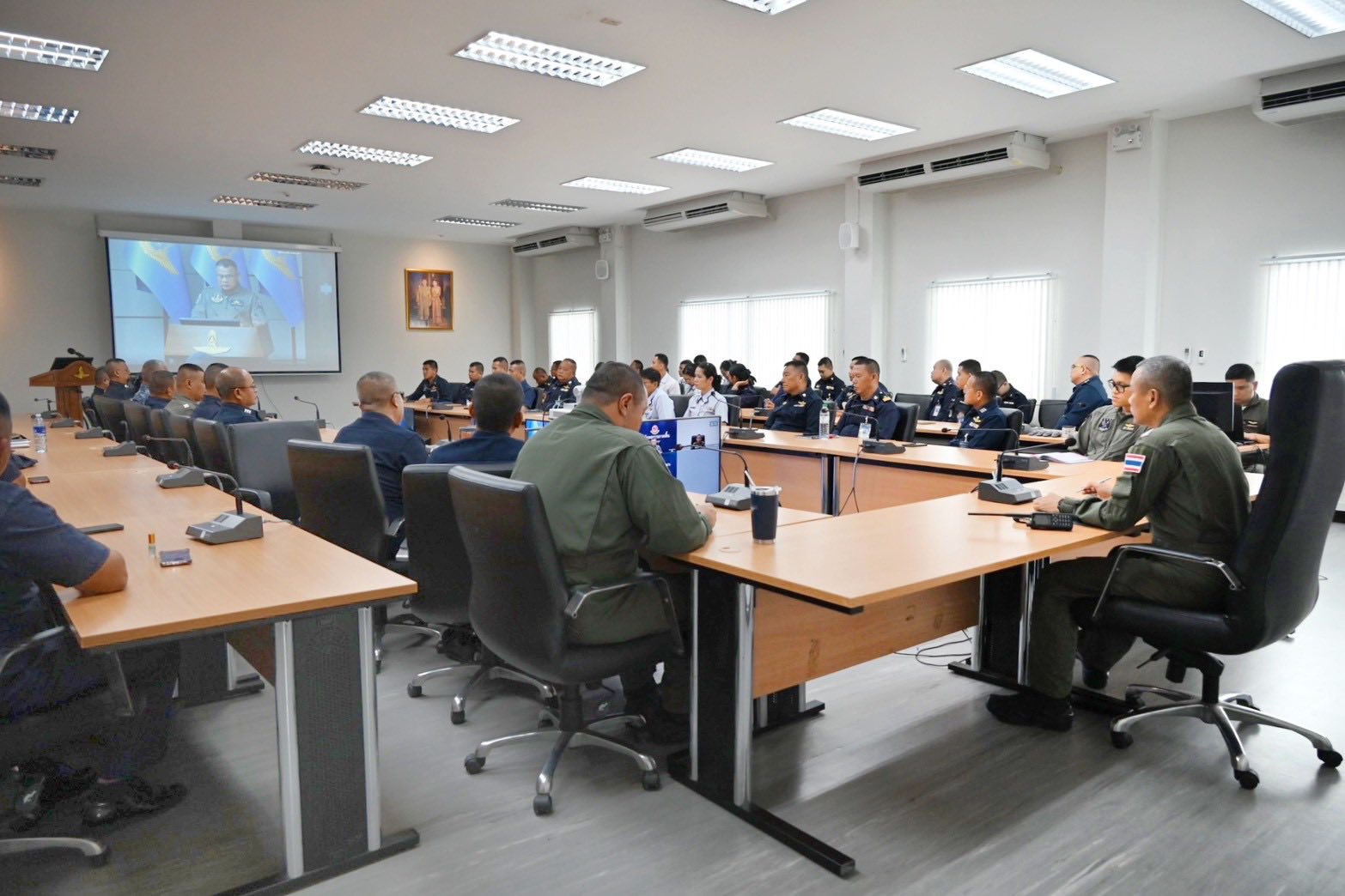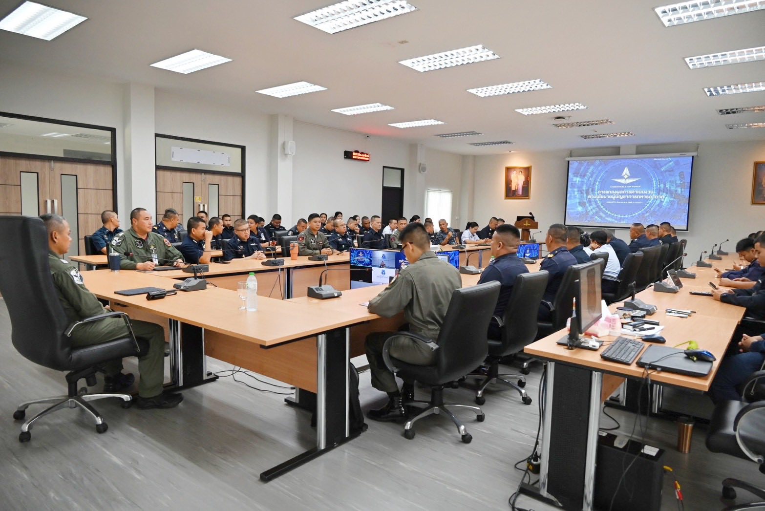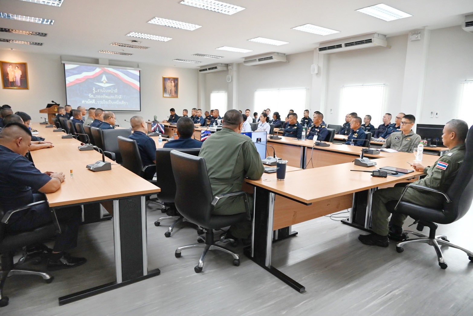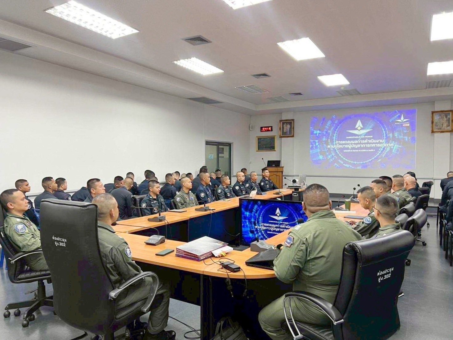 กองบิน ๓ ร่วมรับฟังการแถลงผลการปฏิบัติงานตามนโยบายผู้บัญชาการทหารอากาศ ปี ๒๕๖๗ - ๒๕๖๘