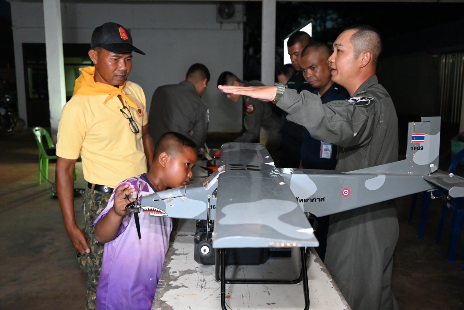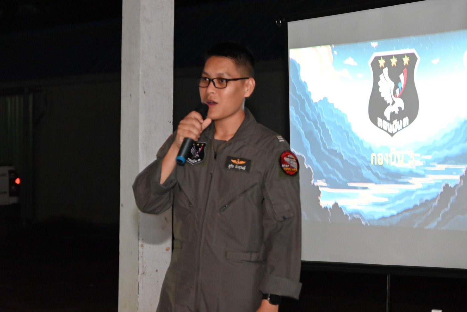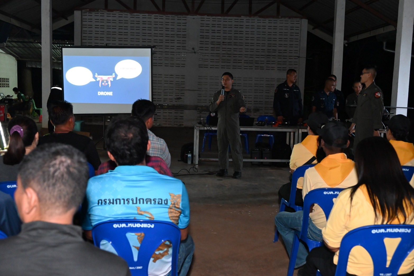 กองบิน ๓ สนับสนุนวิทยากรบรรยาย “ความรู้เกี่ยวกับโดรน–เครื่องบิน” ให้กับชุดรักษาความปลอดภัยหมู่บ้าน (ชรบ.) ในการสังเกตอากาศยานเวลากลางคืน